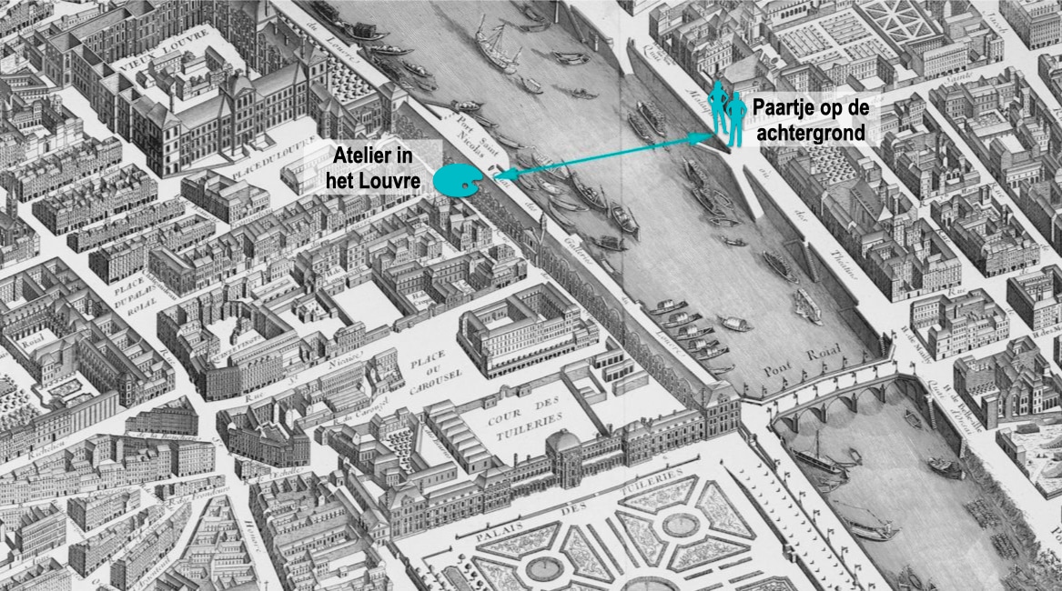 Lange tijd hebben kunstliefhebbers zich afgevraagd waar Villers’ portret van Charlotte du Val d’Ognes is geschilderd. De achtergrond van het werk, waarop een kade aan de Seine te zien is, heeft geholpen om de plek te herkennen. De kademuur op de achtergrond is waarschijnlijk de Quai Malaquais, waarop je uitkeek vanuit het Louvre.