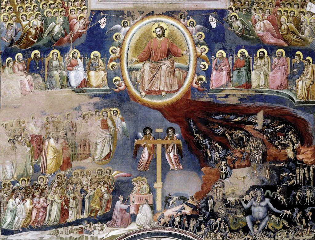 Dante beschrijft in de Goddelijke Komedie dat hij in de 7e kring van de hel zielen van geweldplegers tegenkomt. “Ik herkende geen van allen, maar ze hadden om hun hals een buidel hangen.” Tussen hen zat ook een Paduaan “op wiens witte tas het teken stond van een lichtblauw drachtig varken”. Dante beschrijft hier het familiewapen van de familie Scrovegni. Deze schatrijke familie van handelaars en bankiers rekenden woekerrentes voor hun leningen. Met het geld wat ze verdienden, bouwden ze een palazzo met een grote grafkapel.