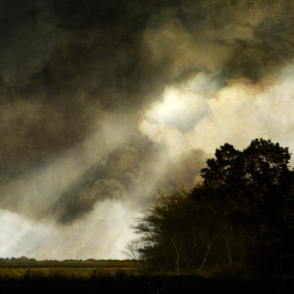 Wolken spelen ook de hoofdrol in de landschappen van Saskia Boelsums. Vaak is de horizon onder in het beeld, zodat bijna het hele werk wordt gevuld met Hollandse luchten. Op stormachtige dagen gaat Boelsums vaak de buien tegemoet. Ze laat de dreigende wolkenluchten op zich afkomen en schiet tientallen foto’s.