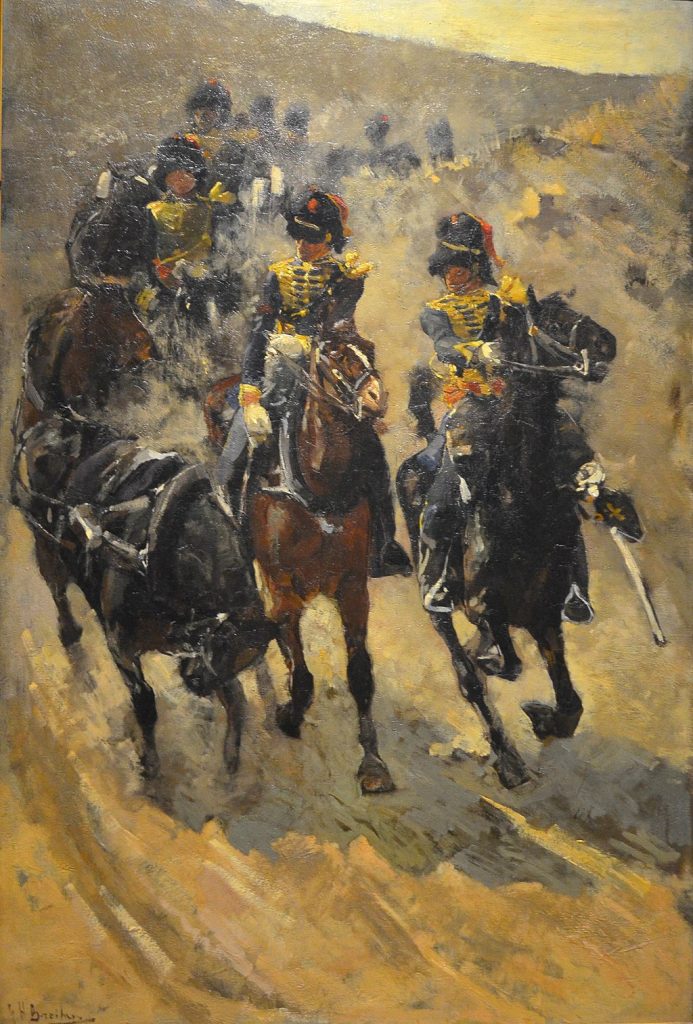 Al als beginnend kunstenaar was Breitner gefascineerd door paarden. Hij bestudeerde de militaire oefeningen in de duinen buiten Den Haag. Het schilderij “Gele ruiters in de duinen” kreeg goede kritieken en betekende Breitner’s doorbraak. Ook dit schilderij heeft iets fotografisch. De schaduwen, stofwolken en het perspectief zorgen voor een werk vol beweging.