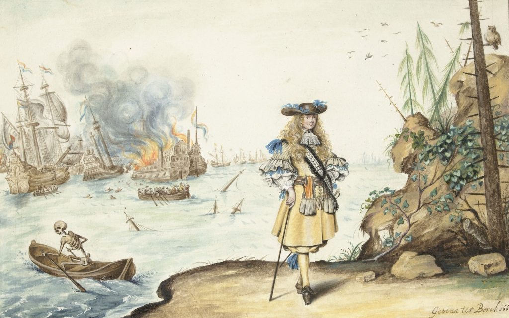 Gesina ter Borch kreeg nooit een formele opleiding tot kunstenaar, ondanks dat ze uit een echte kunstenaarsfamilie kwam. Het was het lot van de vrouw in de 17e eeuw, gedwongen tot een leven zonder eigen carrière. Toch tekende en schilderde Gesina ter Borch haar hele leven. Ze werkte vrijwel exclusief als aquarellist. Het Rijksmuseum bezit 3 albums waarin ze gedichten en liedteksten illustreerde. Onder de sierlijke letters van de gedichten staan grappiger taferelen: muzikanten, een officier en een dame, een speelse achtervolging.
