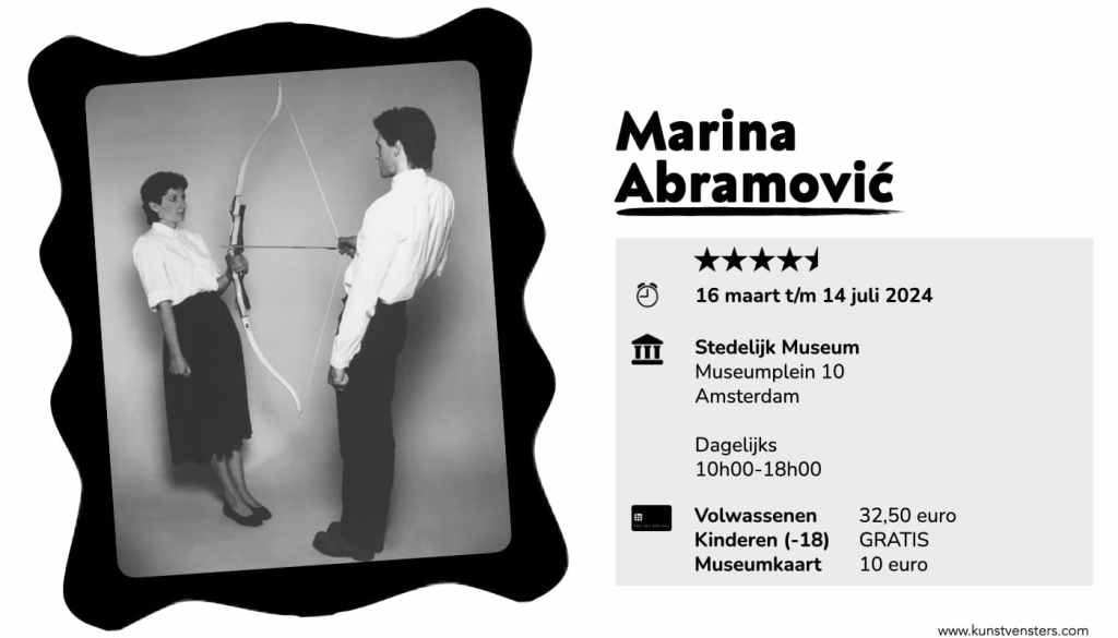 Er staat een lange rij op het museumplein. Ik kan met niet herinneren wanneer ik voor het laatst zolang heb moeten wachten om het Stedelijk Museum binnen te komen. Het zegt iets over de aantrekkingskracht van de performances van Marina Abramović. Toch is dat niet altijd zo geweest. Lang was performancekunst iets voor de incrowd. Slechts enkele tientallen mensen zagen Abramovic een ster in haar buik snijden bij de eerste uitvoering van Rhythm 5 in 1974. Bij de eerste uitvoering van Imponderabilia in Bologna glipten misschien honderd mensen tussen de naakte lichamen van Ulay en Abramovic door. De herperformance van dit beroemde werk is nu het hoogtepunt van het grote retrospectief van Marina Abramović in het Stedelijk Museum.