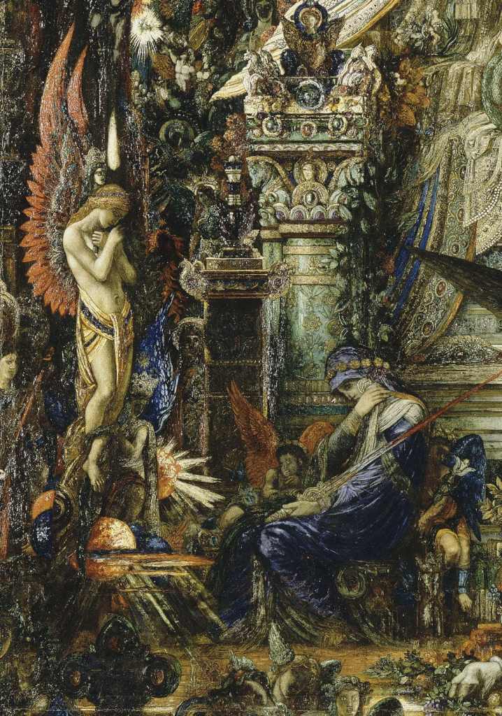 Gustave Moreau begon zijn loopbaan in de klas van François Edouard Picot aan de École des Beaux-Arts. Maar zijn stijl dreef al snel af van de klassieke academiekunst. Na twee mislukte pogingen om de Prix de Rome te winnen, verliet hij daarom voortijdig de kunstacademie. Eenmaal ontsnapt aan het keurslijf van de École des Beaux-Arts, zocht hij nieuwe inspiratiebronnen.