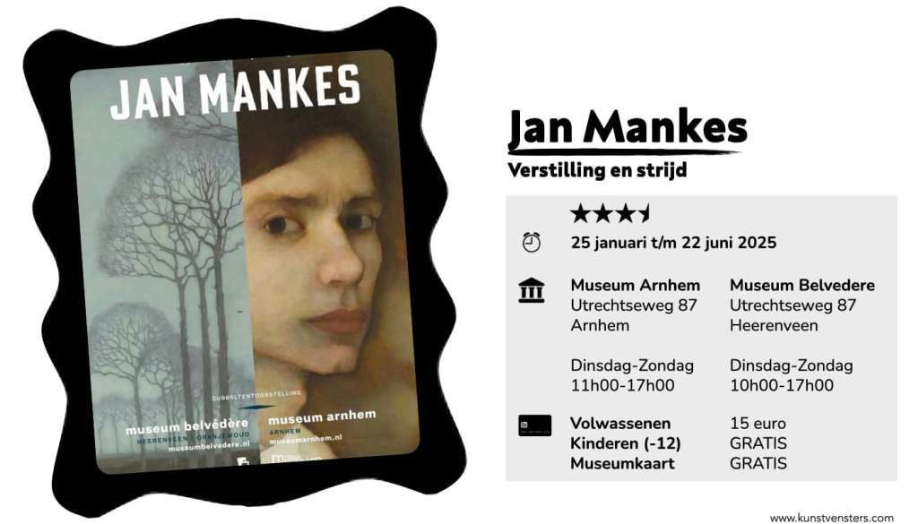 Een vogeltje in de lentebloesem, twee geitjes op een boerenerf of een rij kale bomen op een winterdag. De kleine schilderijtjes van Jan Mankes ademen een enorme liefde voor landschap en natuur. Het zijn intieme werken, die uitnodigen om dichterbij te komen en even in een veilige wereld te stappen. Mankes maakte de mystieke schilderijen uit overtuigen dat geloof, natuur en mens verbonden waren.