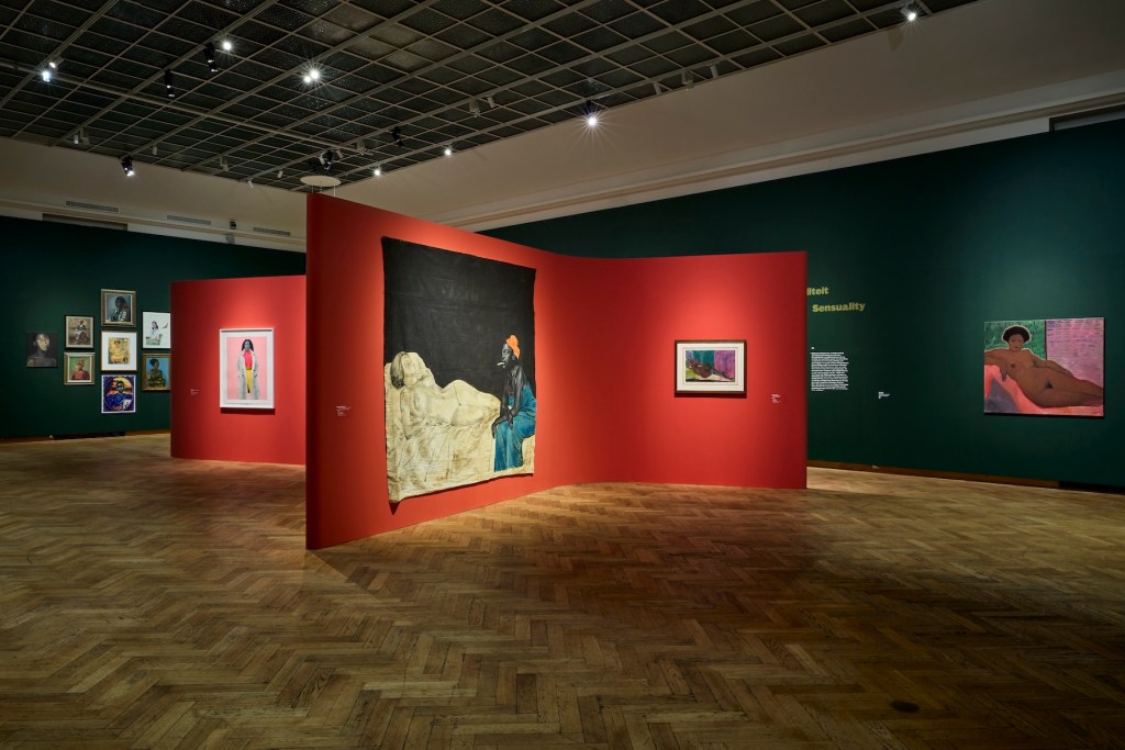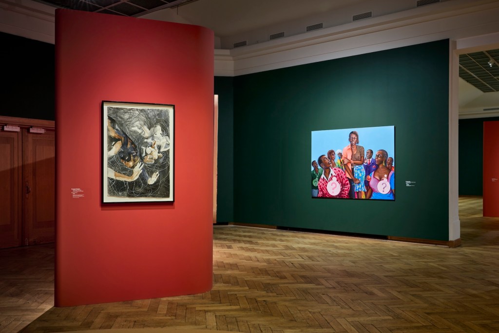 De verbinding van de Afrikaanse kunst met de rest van de wereld is zo een rode draad door de tentoonstelling. Zo staat de ontmoetingen tussen zwarte en witte mensen centraal in schilderijen van de Keniaanse kunstenaars Michael Armitage en Olivier Souffrant uit Haïti.