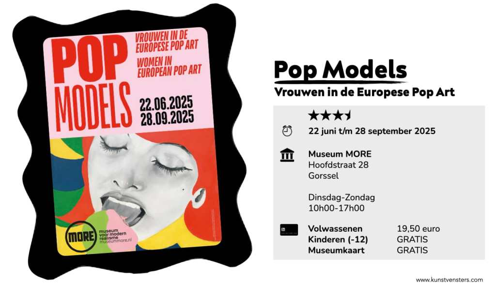 Vrouwen spelen een hoofdrol in de popart van de jaren 1960. Reclame, strips en magazines stonden vol met stereotype weergaves van de vrouw. In de tentoonstelling Pop Models laat Museum MORE zien dat vrouwelijke kunstenaars in Europa dit beeld deden veranderen.