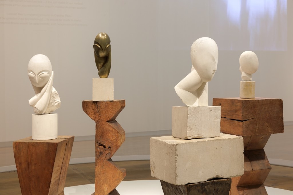 Brancusi zorgde voor een revolutie in de beeldhouwkunst. In 1904 vestigde hij zich in Parijs, waar hij korte tijd werkte in Rodins atelier. De expressieve beelden van zijn leermeester pasten echter niet bij zijn eigen ambities. Zelfstandig ontwikkelde hij een nieuwe vormtaal, geïnspireerd door Afrikaanse maskers en pure geometrische vormen. Aan het begin van de tentoonstelling wordt Brancusi’s werkwijze gedemonstreerd aan de hand van vier versies van een kinderkopje (Tête d’enfant, 1908-1921). Het eerste beeld toont nog een realistisch gezicht, maar stap voor stap versimpelt hij de vorm tot een zuiver ovaal.