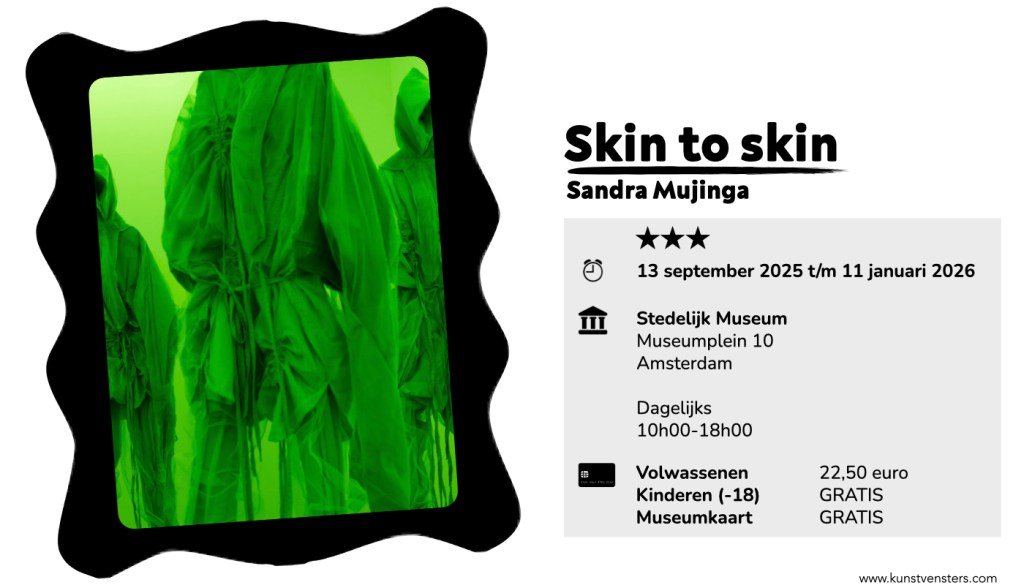 In de groene schemer van het Stedelijk Museum wacht een wereld die tegelijk fascineert én ongemakkelijk maakt. Sandra Mujinga transformeert de kelderzaal tot een post-apocalyptisch landschap vol zombie-achtige figuren die vragen oproepen over identiteit, overleven en thuishoren.