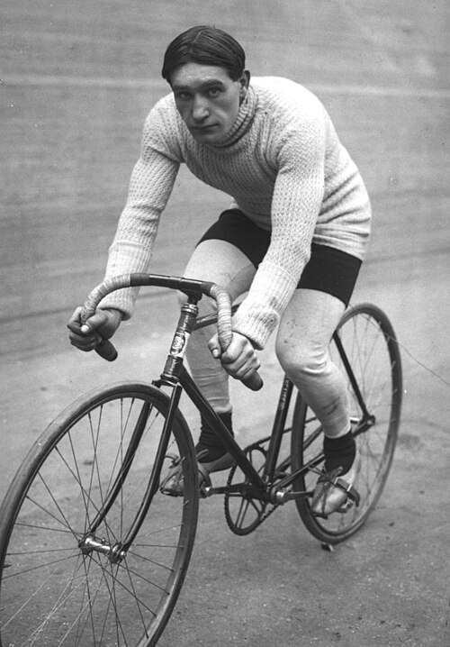 Het is daarom niet verrassend dat Metzinger meerdere schilderijen van wielrenners heeft gemaakt, waarvan “Op de wielerbaan” uit 1912 het beroemdst is. Op het doek staat Charles Crupelandt vlak nadat hij in Roubaix over de finish is gekomen. Op de boarding op de achtergrond is “PARIS-ROUB” te lezen, waardoor we zeker weten dat het om Parijs-Roubaix gaat. Metzinger knipte de tekst letterlijk uit de krant en plakte het in het schilderij, net als de reclame voor PNEUS banden. Het doek is dus een combinatie van een collage met een schilderij.