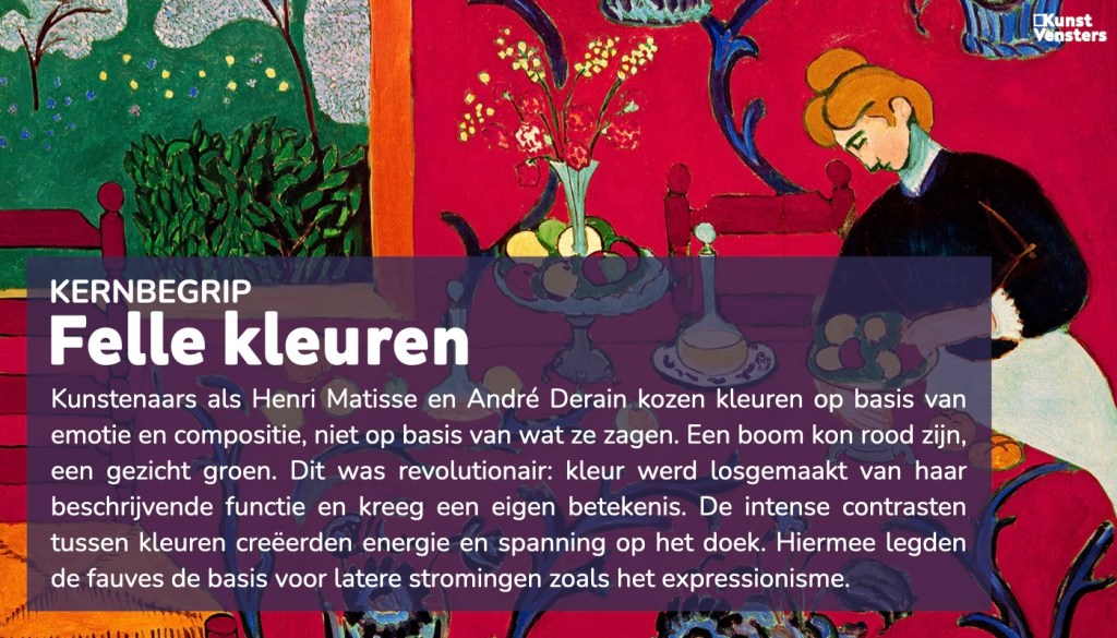 Rond 1900 kwamen jonge schilders als Henri Matisse, André Derain en Maurice de Vlaminck samen in Parijs en omgeving. Ze waren gefascineerd door de vrijheid die kleur kon bieden. In de zomer van 1905 trokken Matisse en Derain naar het vissersdorpje Collioure aan de Franse Middellandse Zeekust. Daar schilderden ze met een ongekende kleurvrijheid: blauwe bomen, roze stranden en oranjerode luchten. Het was een artistieke doorbraak die de basis legde voor het fauvisme.