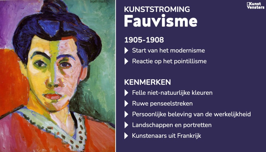 Het fauvisme bracht een kleurexplosie op doek. In felle, onnatuurlijke kleuren en losse penseelstreken schokten Matisse en Derain de kunstwereld aan het begin van de twintigste eeuw. Hoe ontstond het fauvisme? Wie waren de belangrijkste kunstenaars? En wat zijn de kenmerken van de stroming?